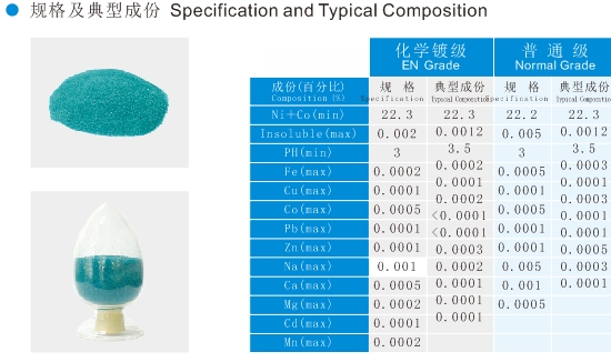 作 用:主要用于高端電鍍,電子電鍍,化學鍍,高端鋰電池三元材料,高端鎳氫電池